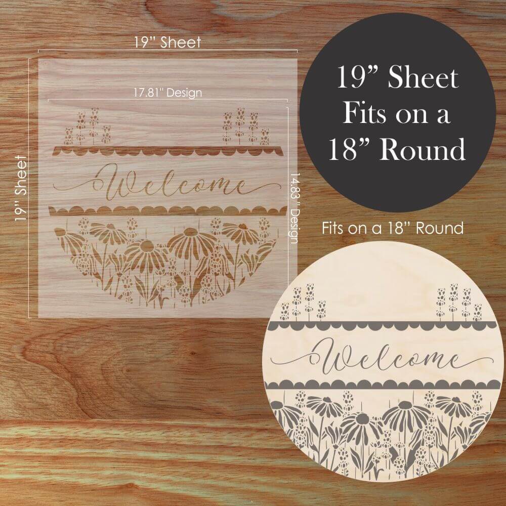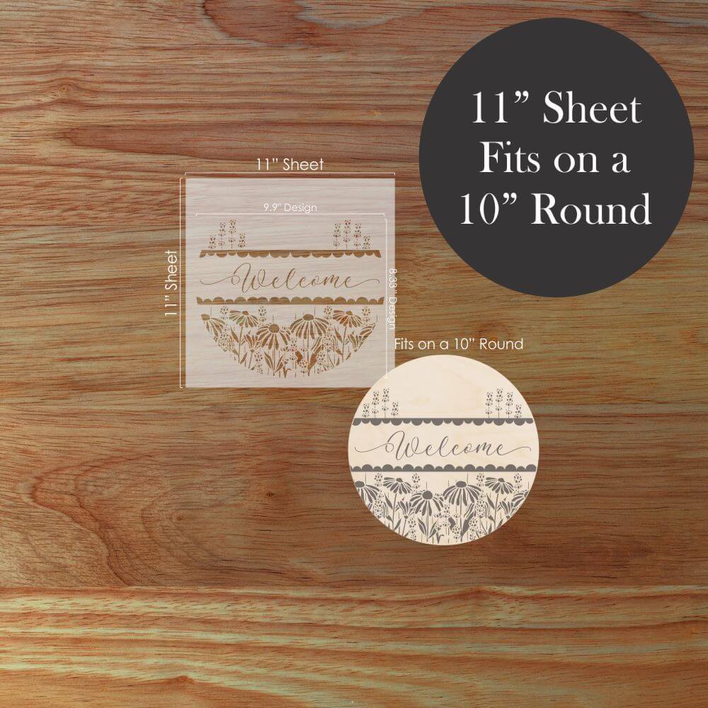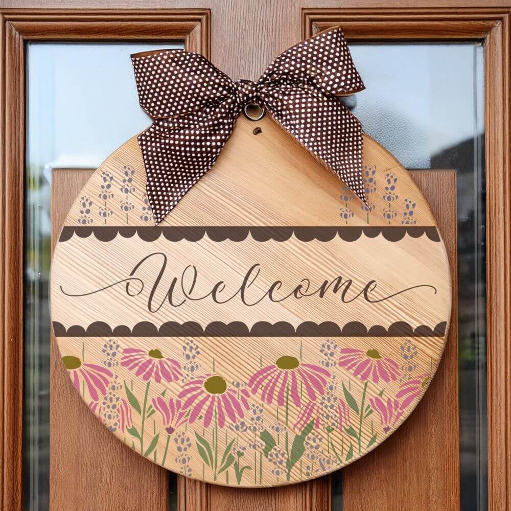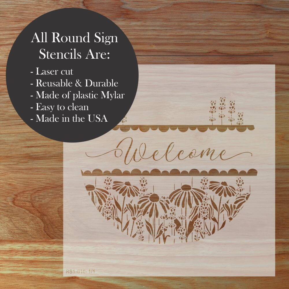 Create eye-catching DIY signs with our Coneflower Welcome Round Sign Stencil. It's the perfect tool for transforming plain wooden rounds into custom home décor or bestselling craft fair creations!