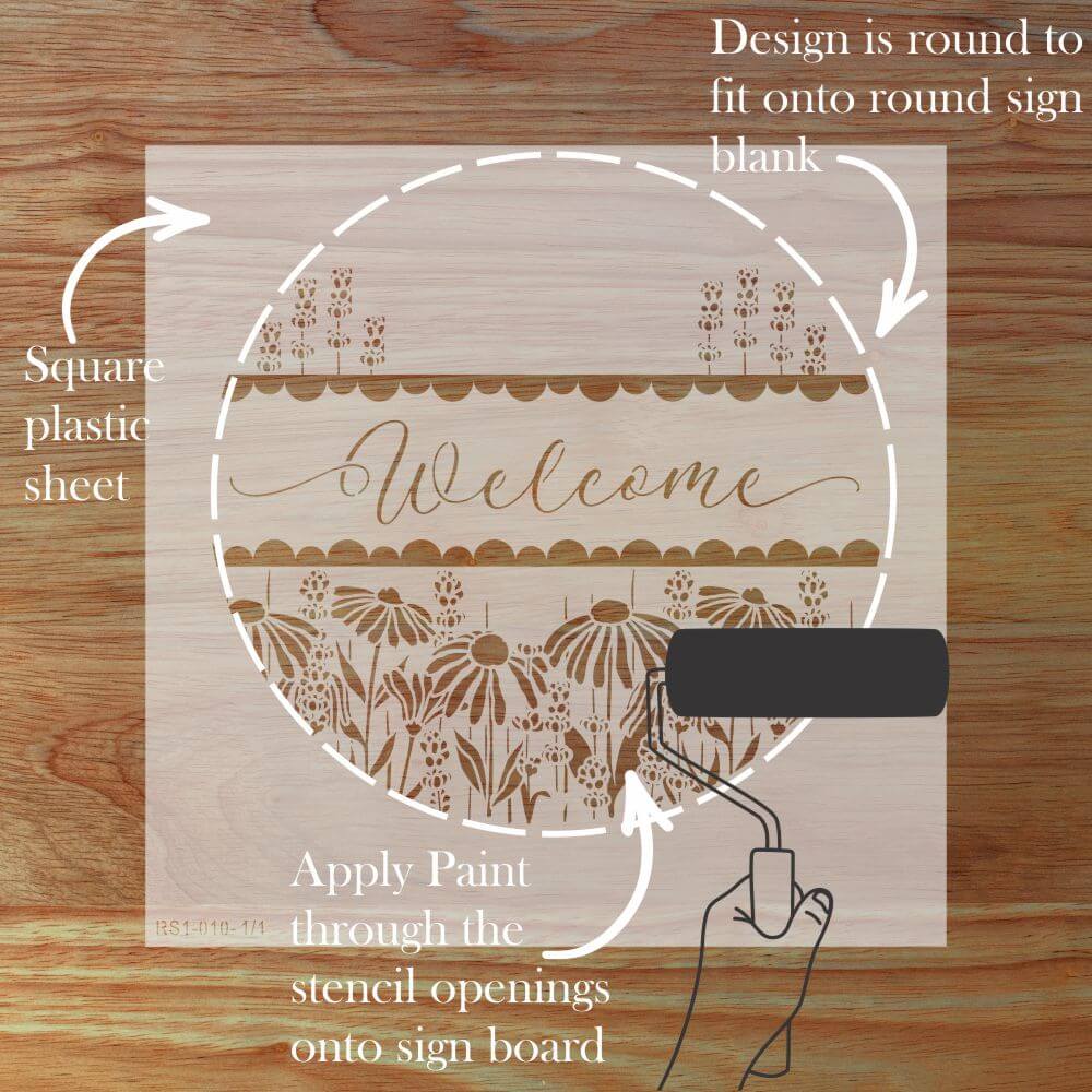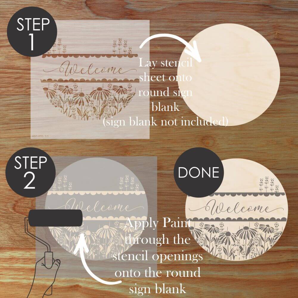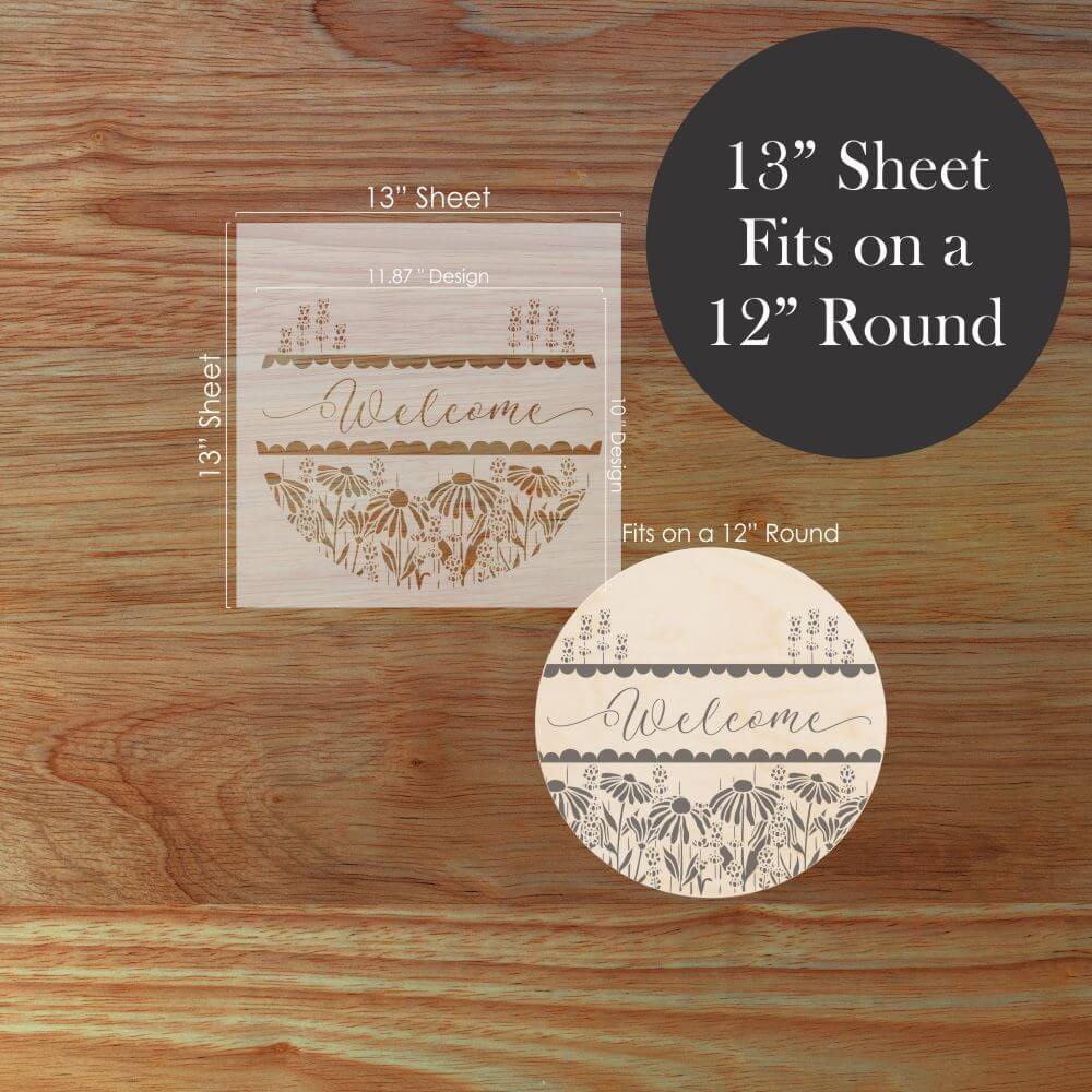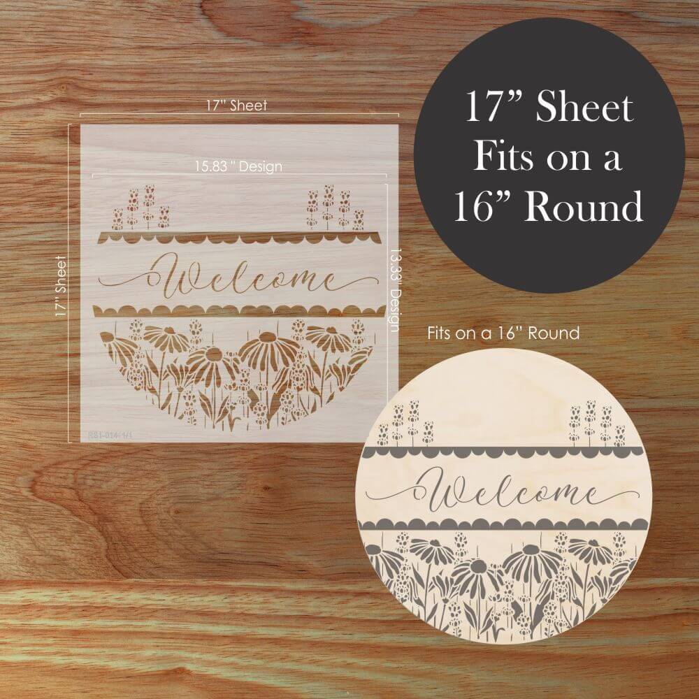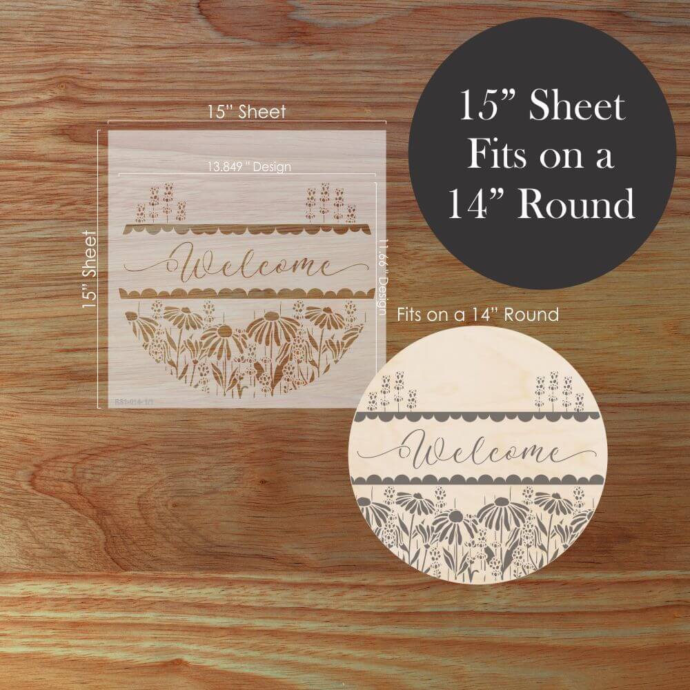 Create eye-catching DIY signs with our Coneflower Welcome Round Sign Stencil. It's the perfect tool for transforming plain wooden rounds into custom home décor or bestselling craft fair creations!